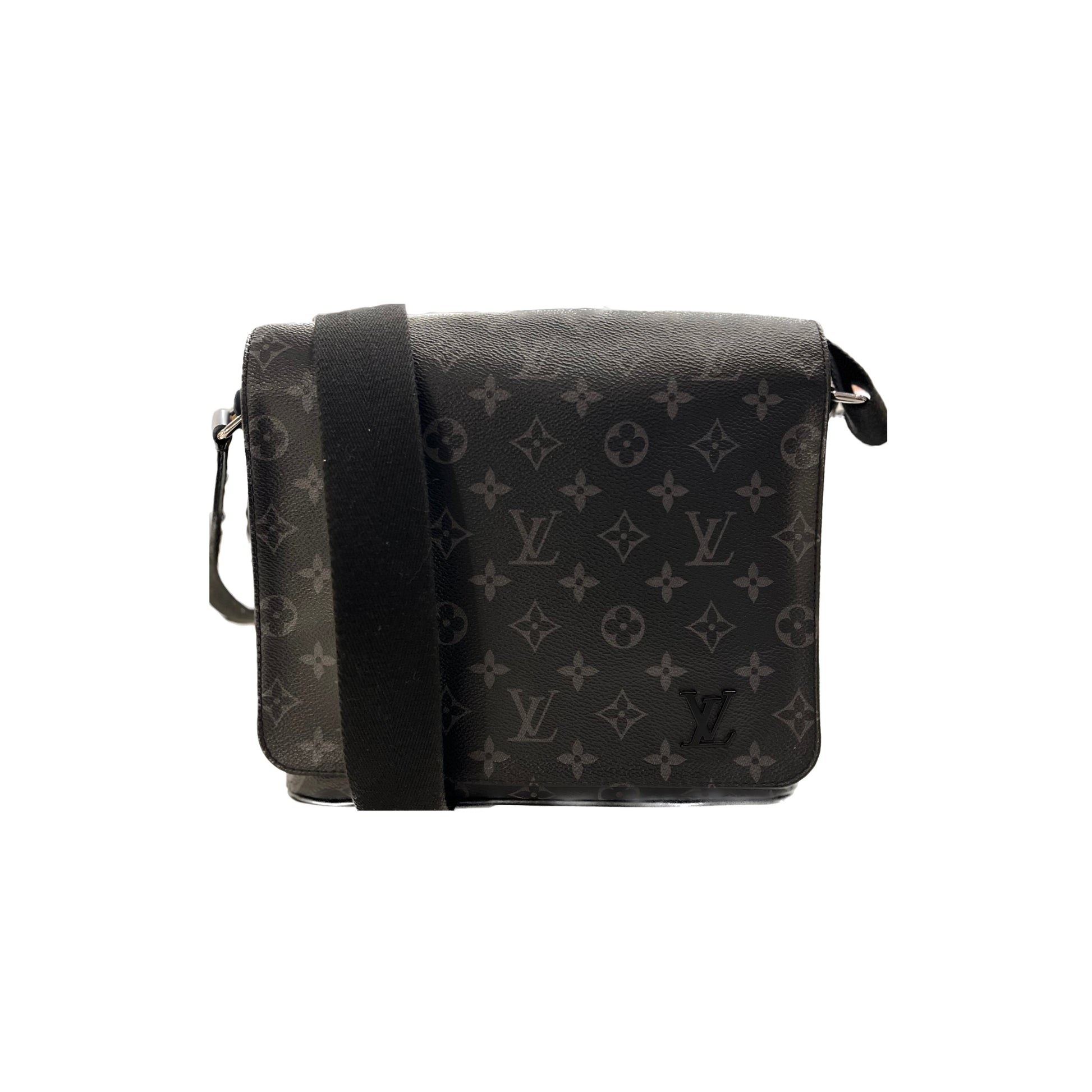 Borsa Messenger Louis Vuitton District in tela monogram Eclipse, vacchetta nera e metalleria argentata in ottimo stato. Misure: 25.5x22x8 cm (diverse da quella attualmente in produzione).
