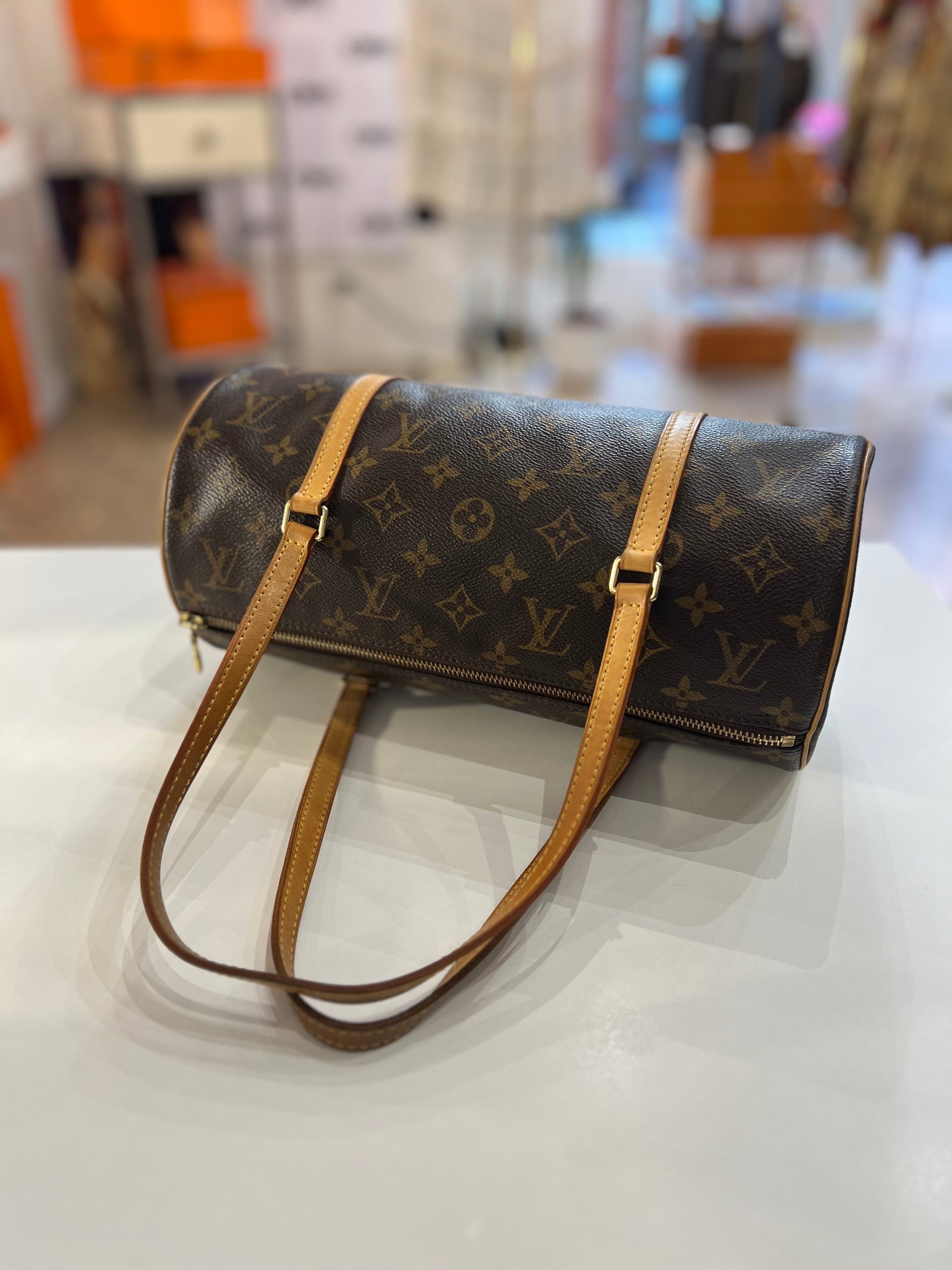 Borsa iconica Papillon nella versione 30 cm accompagnata dalla mini borsetta. Buono/ottimo stato conservativo, sono presenti segni esterni ed interni: per tutti id stagli vedi le foto.